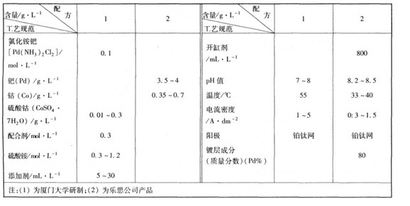 電鍍鈀鉆合金工藝規范