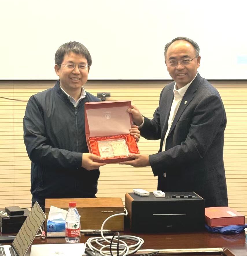 胡文平為譚平恒頒發(fā)學(xué)術(shù)報(bào)告紀(jì)念冊(cè)