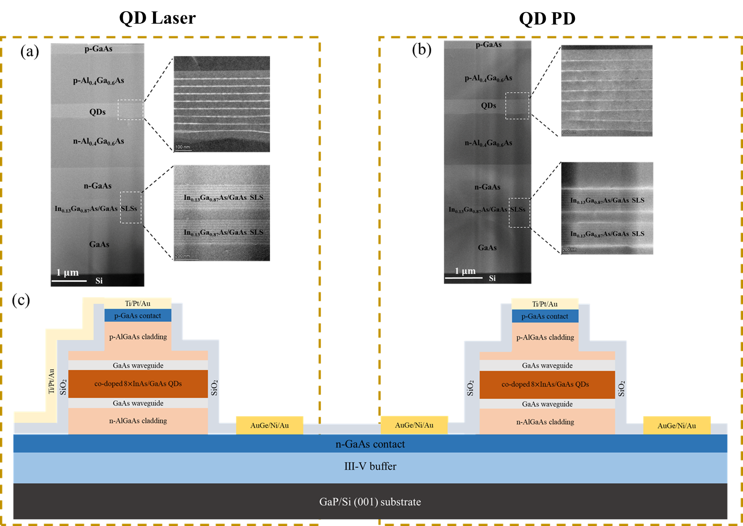 圖2 硅基片上集成量子點激光器與探測器互聯(lián)結(jié)構(gòu)示意圖
