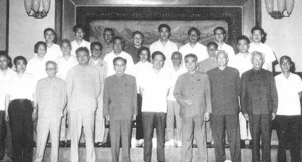 20世紀(jì)70年代,周恩來(lái)總理接見(jiàn)楊振寧時(shí)合影(前排右五為楊振寧,后排左三為黃昆)