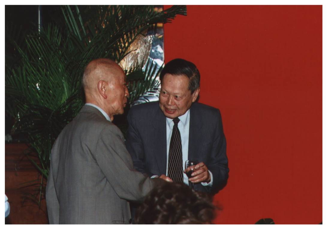 1989年,在黃昆先生七十壽辰學(xué)術(shù)報(bào)告會(huì)上,楊振寧與黃昆合影